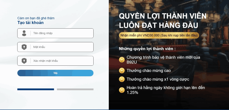 Mở tài khoản là thao tác bắt buộc bởi B9casino không cho phép người chơi chơi thử các sản phẩm mà không sở hữu một tài khoản chính chủ. Với những thao tác đơn giản sau đây là bạn đã có thể sở hữu tài khoản của mình tại sòng bài này:
